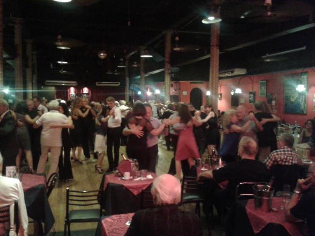 Les bons vieux danseurs argentins sont encore nombreux à pratiquer leur art. En fait ils font assez peu de figures mais ils savent transmettre une agréable sensations à travers une excellente connexion, ce que les femmes adorent. Les femmes argentines sont à la recherche d’excellents danseurs, qu’elles trouvent bien évidemment chez leurs compatriotes argentins mais aussi chez quelques étrangers. Si vous êtes un homme étranger, de qualité de danse moyenne, vous avez très peu de chance d’intéresser une argentine. Les argentines sont assises aux premiers rangs (toutes les femmes sauf rares exceptions sont regroupées sur 2 ou 3 rangs. Les hommes également de leur côté. La première rangée de femmes est réservée aux excellentes danseuses. Inutile de tenter une invitation. De toute façon elles ne regardent pas dans ma direction…Je n’existe pas. Je peux seulement tenter d’inviter les 2e et 3e rangs. Souvent ce sont des étrangères. Quand par hasard (elles ont dû avoir un problème de vision ce jour là !) j’ai réussi à danser avec une argentine, le contact a été très agréable. A ce moment j’ai regretté de ne pas avoir assez travaillé mon Espagnol, ce qui aurait bien occupé la minute destinée aux discussions, entre chaque danse…